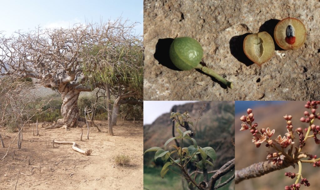 Commiphora ornifolia is an endemic tree species of Socotra Island. Among the four Commiphora species occurring on the island, it is morphologically and ecologically distinct from the others, representing probably a different evolutionary lineage within the genus on Socotra.