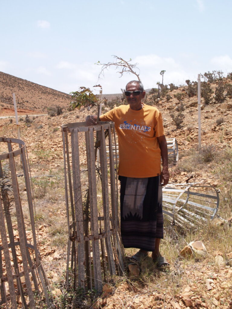 In some of the reforestation areas naturally occurring seedlings out of fences are protected by individual protection. The local managers use different kinds of protection, iron one, made from date palm sticks or fisherman nests. In some areas, they use stones only to build up small stony walls around the seedling.