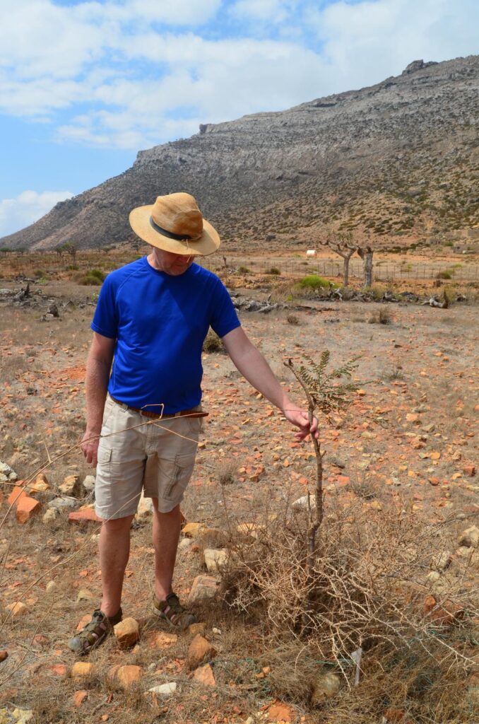 Based on positive scientific results we established two trials, first near Diburak reforestation area, where we sown 10 Boswellia elongata seeds below every Lycium sokotranum shrubs, second near in Shata Qalansyia reforestation area, where Pulicaria stephanocarpa and Boswellia socotrana subsp. aspleniifolia have been used. This method seems to be very promising and feasible with lowest ratio of effort and money spent.